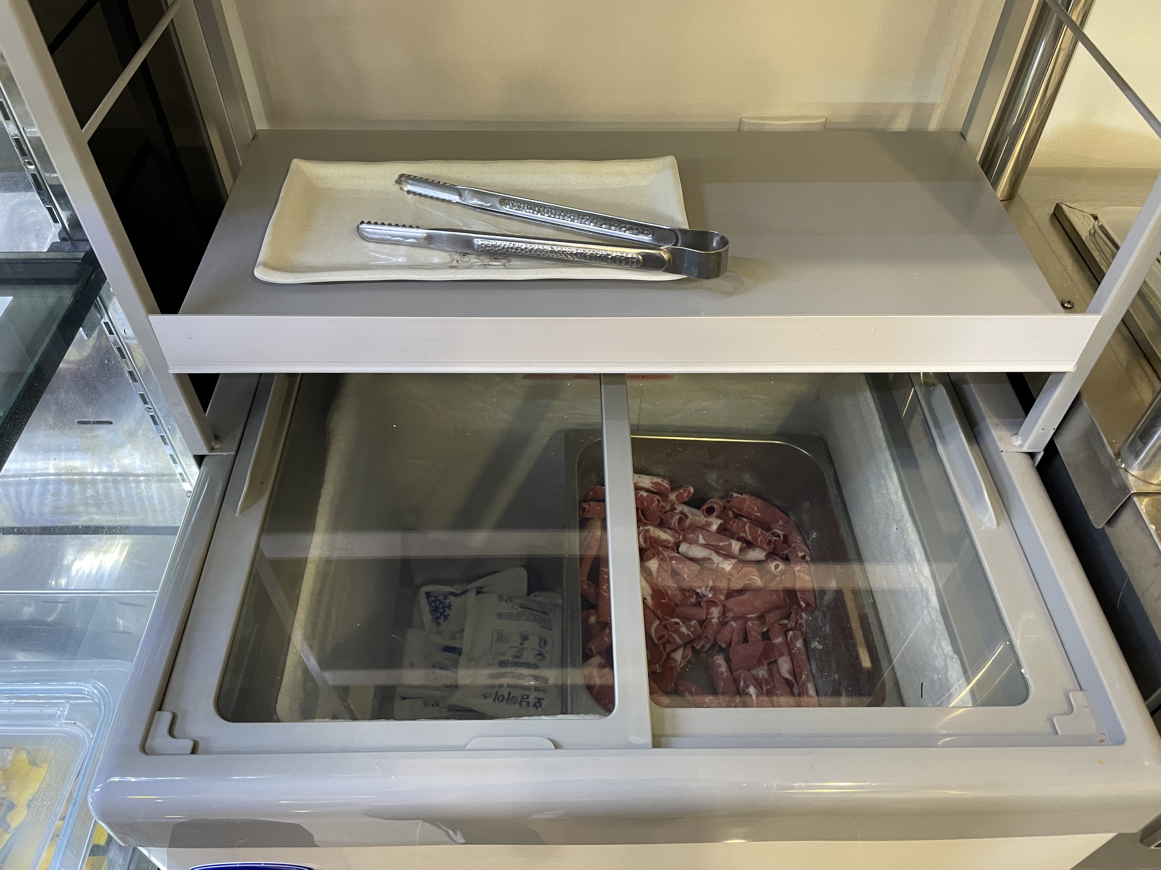 샤브샤브 이용시 야채와 고기를 리필할 수 있는