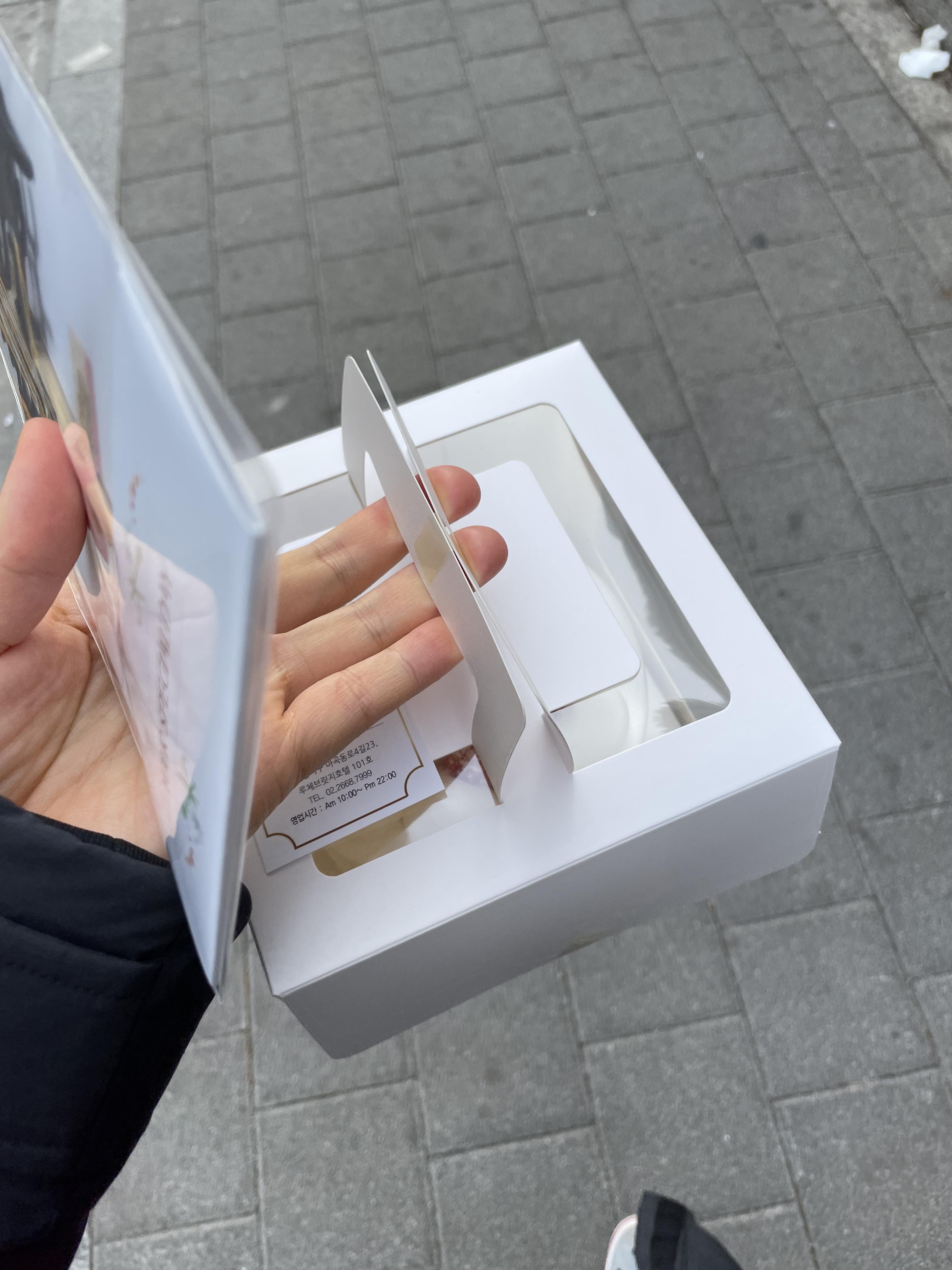 당일 생산된 신선한 케이크를 들고