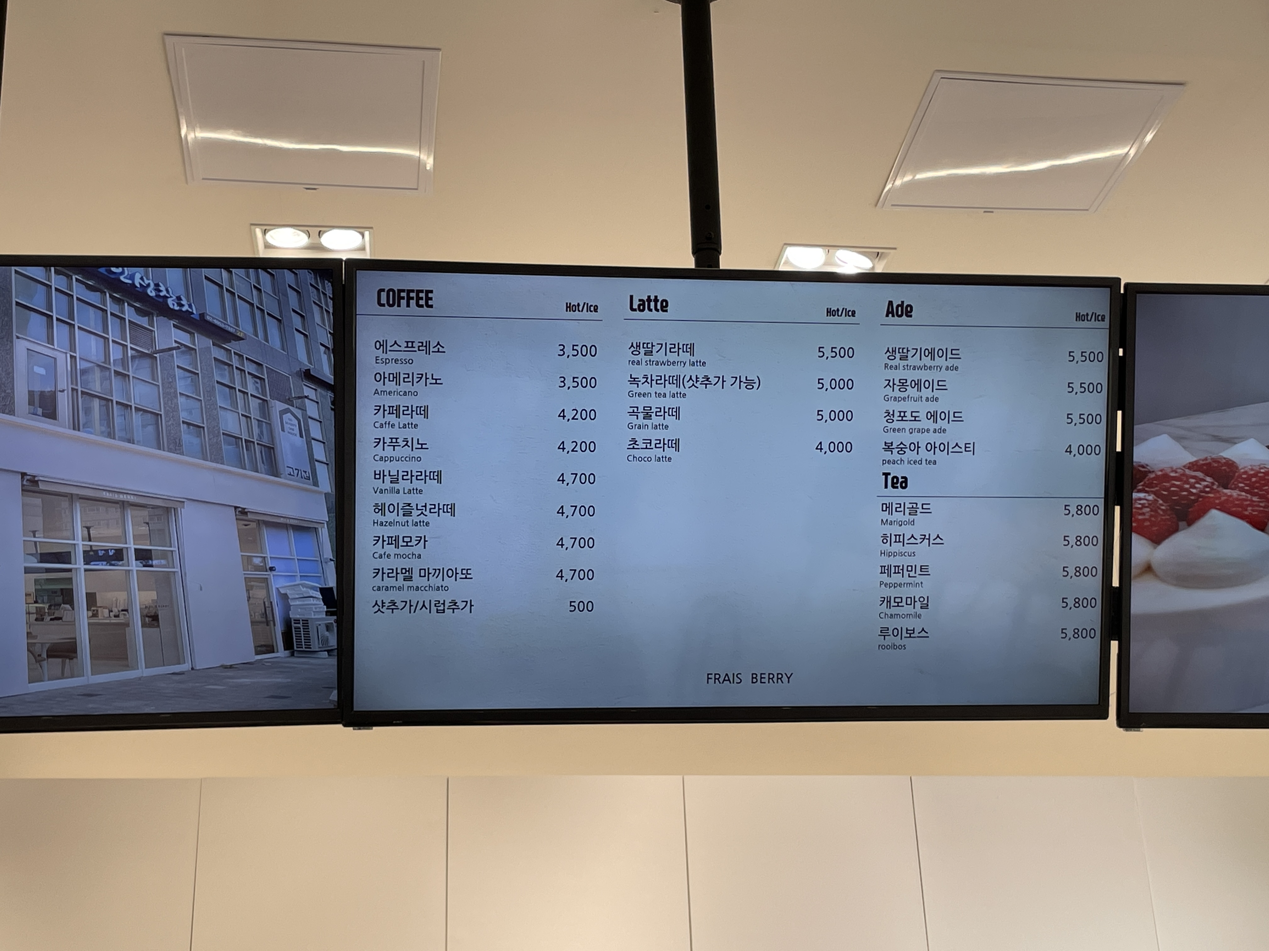 커피와 라떼, 에이드, 티 종류도 판매하고 있으므로